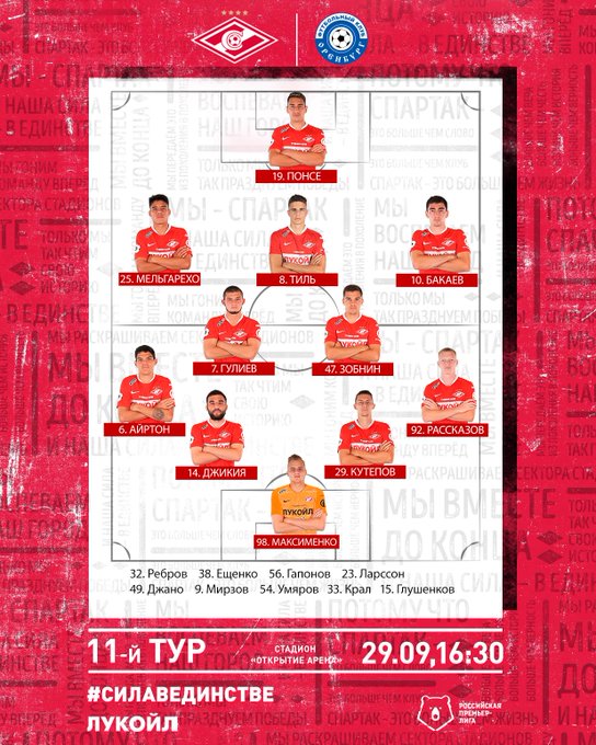 Матч пройдёт на "Открытие Арена", стартовый свисток будет дан в 16:30 по Москве.