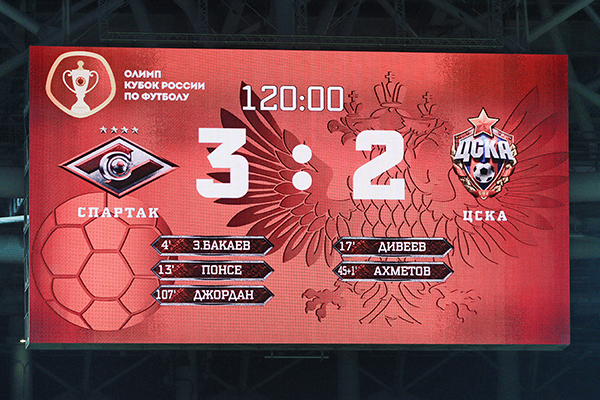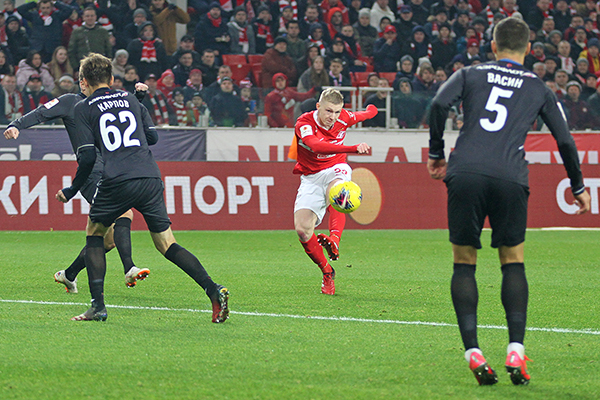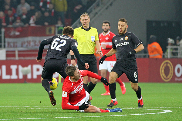 Московский "Спартак" в дополнительное время вырвал победу у ЦСКА со счётом 3:2 в матче 1/4 финала Кубка России по футболу...