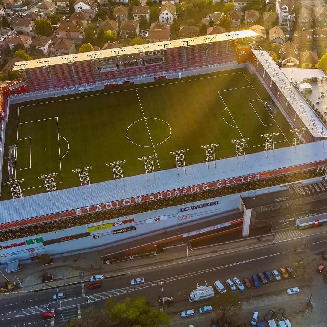 В столице Сербии помимо всемирно известных "Партизана" и "Црвены Звезды" есть и другие клубы, выступающие в местной Суперлиге. Среди них клуб "Вождовац". Он назвал в честь одного из муниципалитетов Белграда. В начале прошедшего десятилетия команда испытывала серьёзные финансовые затруднения и была близка к прекращению существования. Однако реализация интересной идеи помогла спасти команду. Было принято решение снести стадион "Вождоваца", находящийся на улице Запланьска в Белграде. На его месте возвели торговый центр "Стадион". А на крыше этого торгового центра и был размещён новый стадион "Вождоваца". Все работы были завершены в 2013-м году.