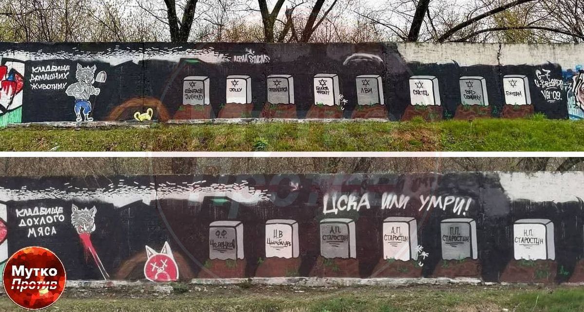 Несколько дней назад красно-белые нарисовали своё граффити и сегодня ночью фаны ЦСКА приехали перебивать его.