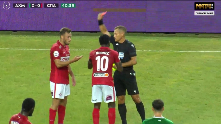 - неназначенный пенальти в ворота "Ахмата" за игру рукой защитника хозяев.