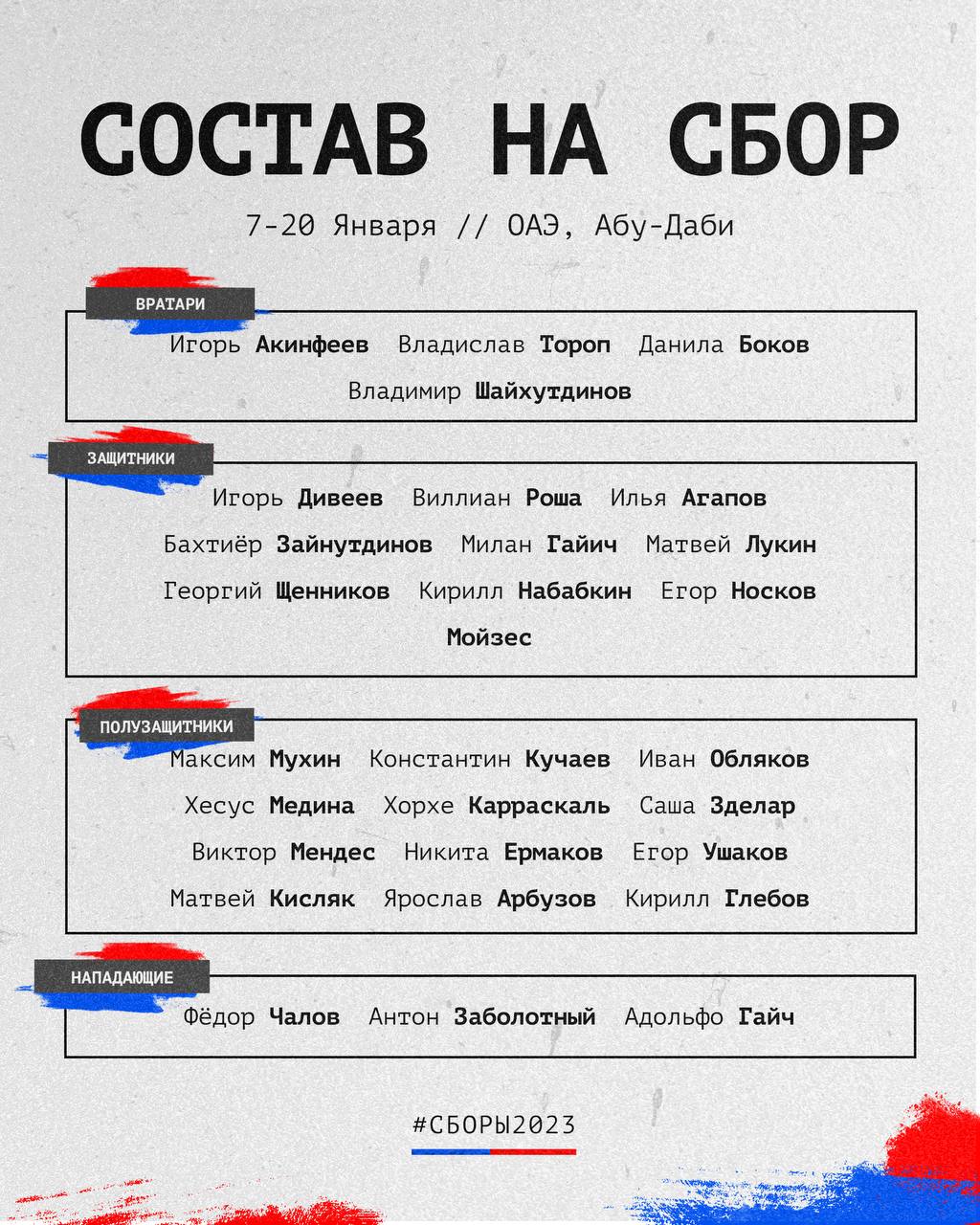 Отметим, что вместе с командой в ОАЭ полетят защитники Илья Агапов и Игорь Дивеев. Первый стал игроком ЦСКА лишь вчера, 6 января, перейдя из «Пари НН». Второй — не играл с середины сентября 2022 года из-за травмы.