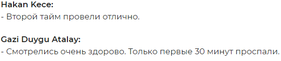 Примерно к такому же мнению пришли и болельщики красно-белой команды, если судить по послематчевым дискуссиям турецких фанатов в социальных сетях.