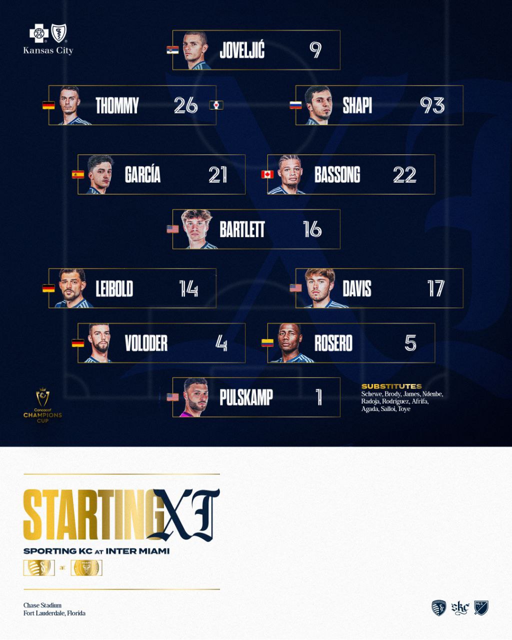 Sport.ru / Футбол. Российский форвард команды "Спортинг Канзас-Сити" Магомед-Шапи Сулейманов получил российский флаг напротив своей фамилии при объявлении стартового состава на матч первого раунда Кубка чемпионов КОНКАКАФ, в котором команда из Канзаса встречалась с клубом "Интер Майами".