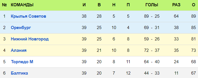 "Крылья Советов" уверенно лидируют и имеют игру в запасе. У самарцев лучший состав в ФНЛ. Один Сергеев с 35 голами чего стоит, есть молодой Галенков (13 голов), да и Зиньковский забил за сезон 10 голов, играя в полузащите. Также есть опытные игроки, которые постоянно играли в РПЛ, выигрывали и брали медали и выступали в Лиге чемпионов: Комбаров, Гацкан, Корниленко, Канунников. Мехди Зеффан выигрывал Кубок Африки вместе с Алжиром и серебро Лиги 1 с "Лионом". Сложно представить, что за 4 матча они потеряют первое или второе место, особенно если учесть, что далее 3 матча с аутсайдерами ФНЛ.
