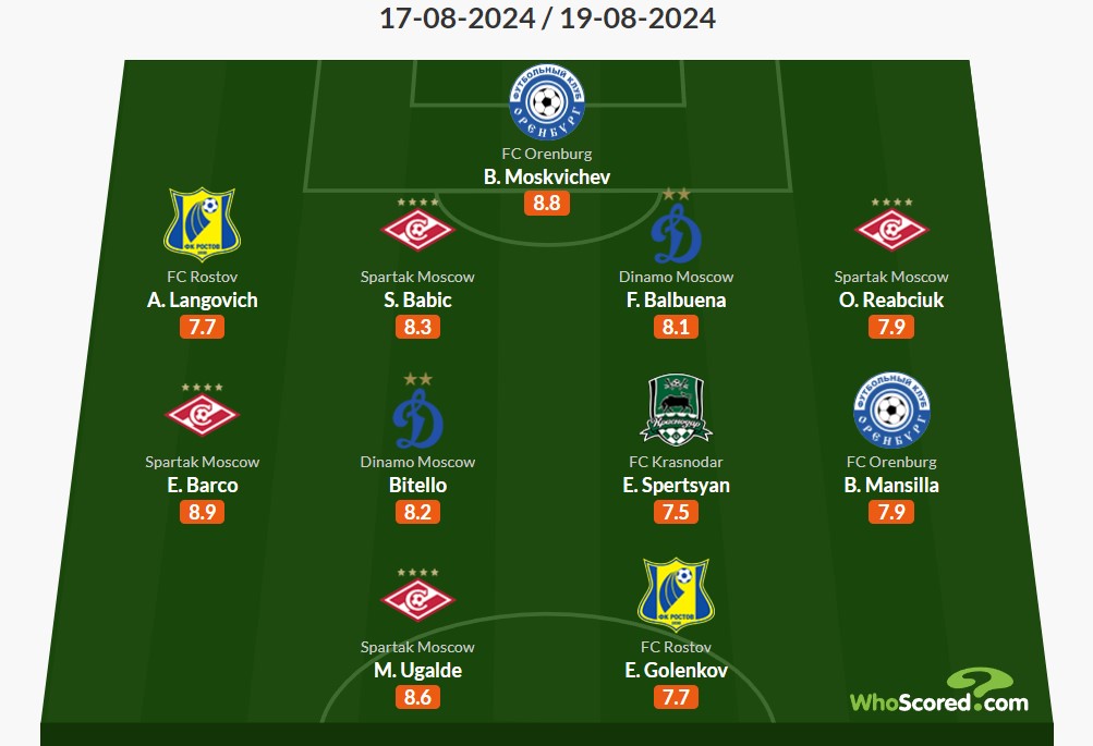 WhoScored представил символическую сборную 5-го тура РПЛ