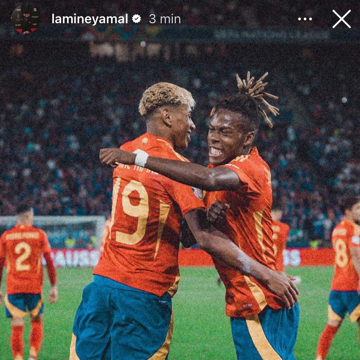 Sport.ru / Футбол. Полузащитник "Барселоны" Ламин Ямаль опубликовал новый пост в своих социальных сетях на фоне слухов о возможном переходе Нико Уильямса в состав каталонского клуба.