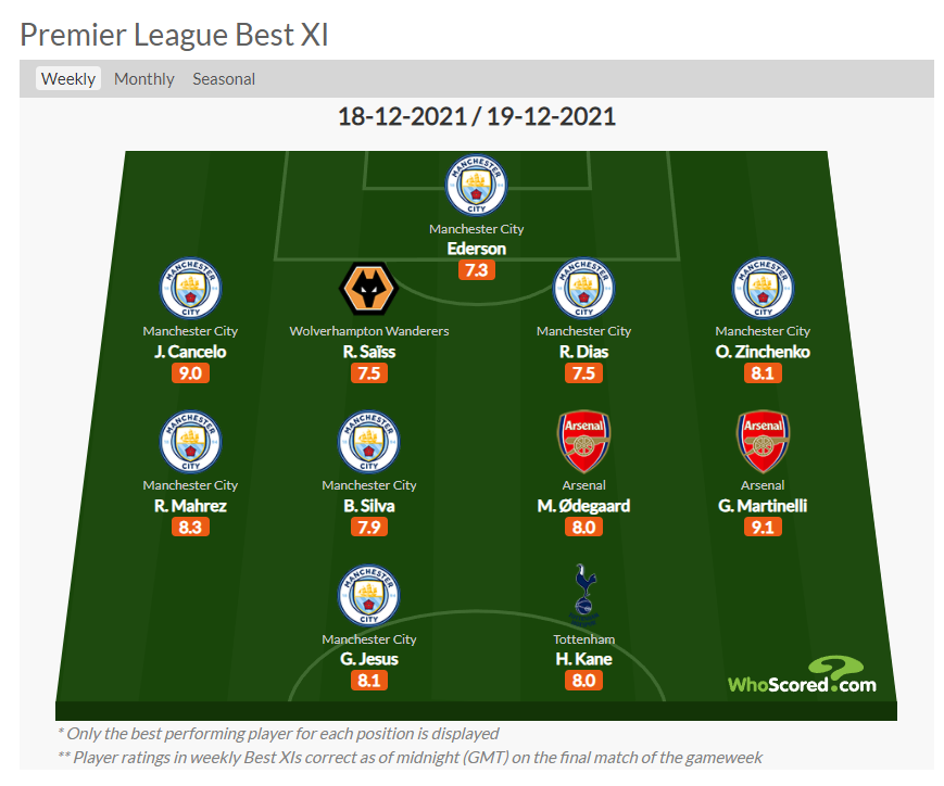 Во вторник, 21 декабря, популярный портал WhoScored опубликовал свою версию символической сборной 18-го тура высшего эшелона английского футбола