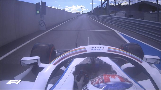 Николас Латифи (Williams) выезжает первым из боксов. Напомним, что в третьей тренировки пилот попал в аварию.