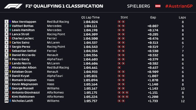 Валттери Боттас (Mercedes) стал лучшим в первой квалификации сезона. Второе время показал Льюис Хэмилтон (Mercedes), замкнул тройку лидеров действующий победитель Гран-при Австрии Макс Ферстаппен (Red Bull).