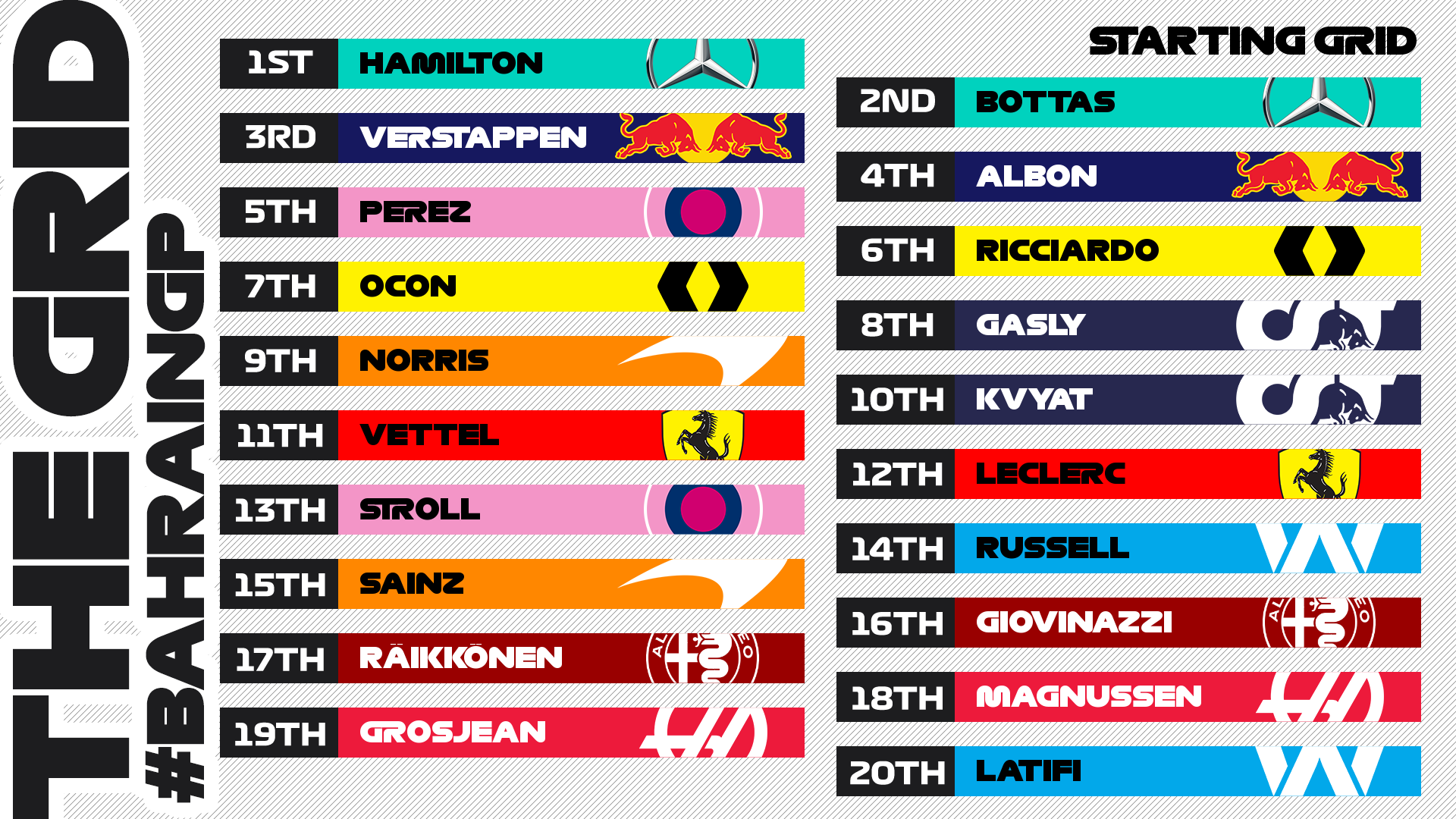 Льюис Хэмилтон (Mercedes) выигрывает Гран-при Бахрейна. На втором и третьем месте финишировали Макс Ферстаппен и Алекс Албон (Red Bull). Даниил Квят (Alpha Tauri) финишировал на одиннадцатом месте.