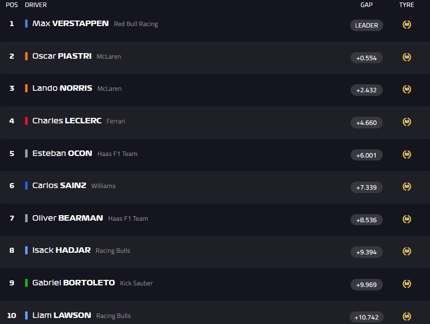 Ферстаппен проходит сразу Пиастри и выходит на первое место.