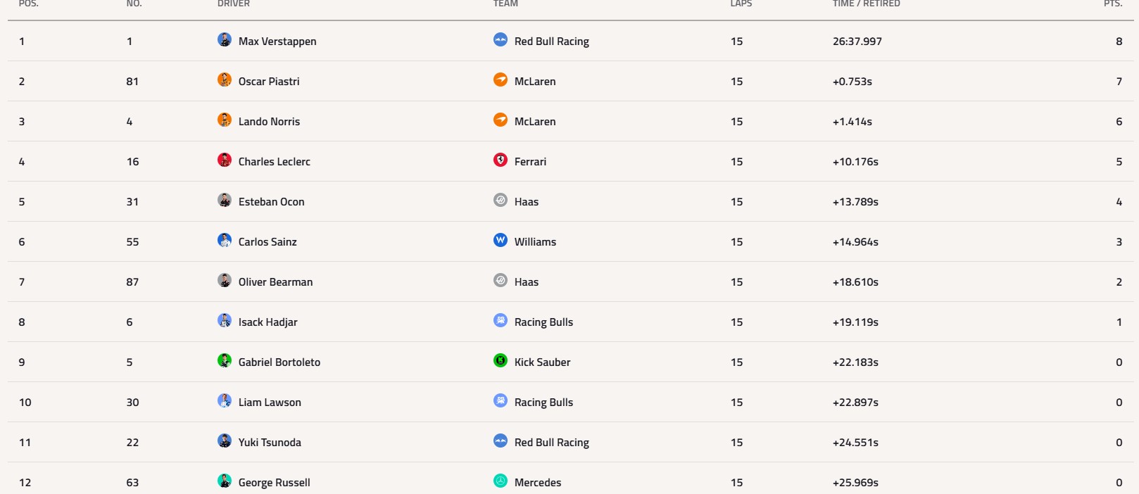 Пиастри и Норрис - единственные, кто потерял позиции на старте.