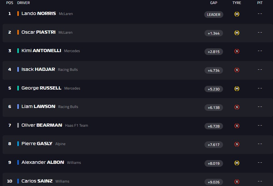 Сейчас на софтах Норрис, Рассел, Албон и Колапинто, остальные на медиумах.