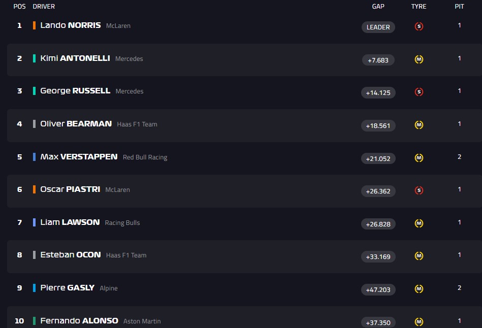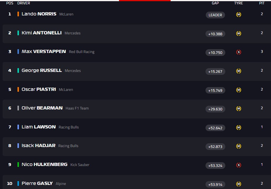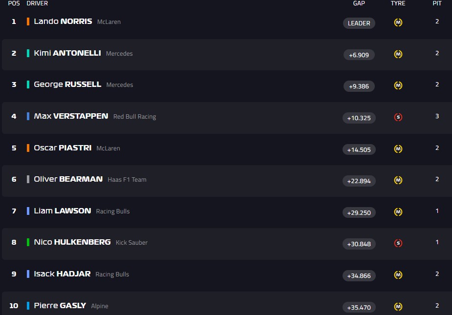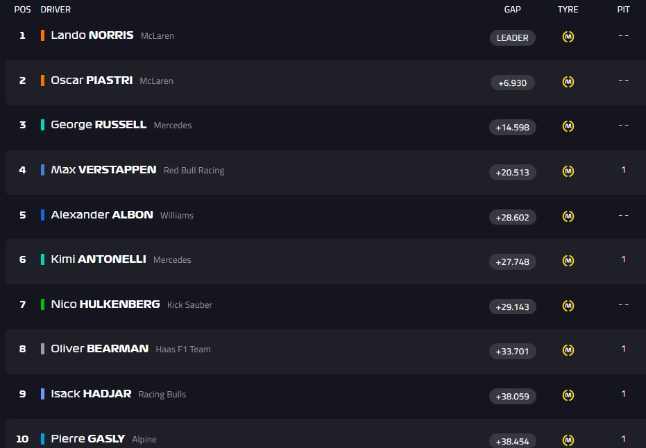 Норрис на пит-стопе и ему поставили софт. Ландо вышел на 4-м месте.