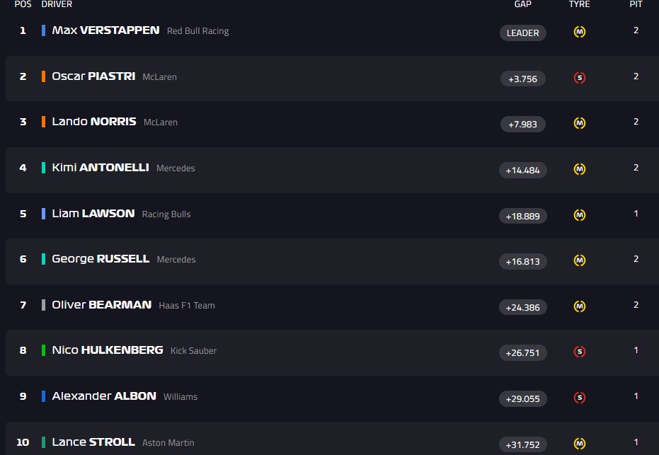 Антонелли на пит-стопе и Кими вышел на трассу 11-м. Ферстаппен уже 4-й.