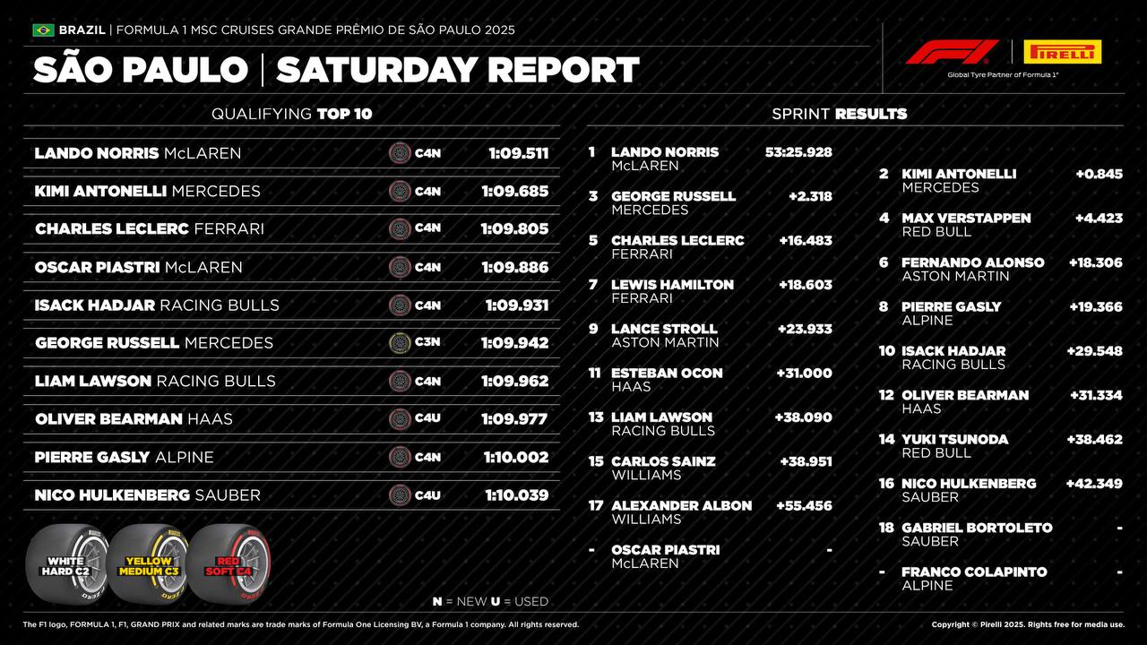 Норрис выигрывает Гран-при Бразилии, Ферстаппен - третий после старта с пит-лейн