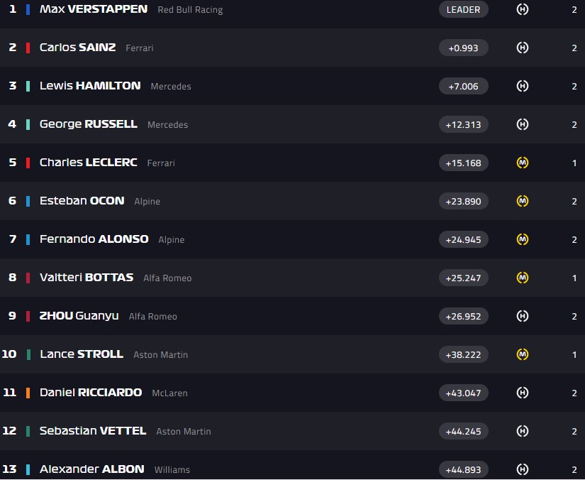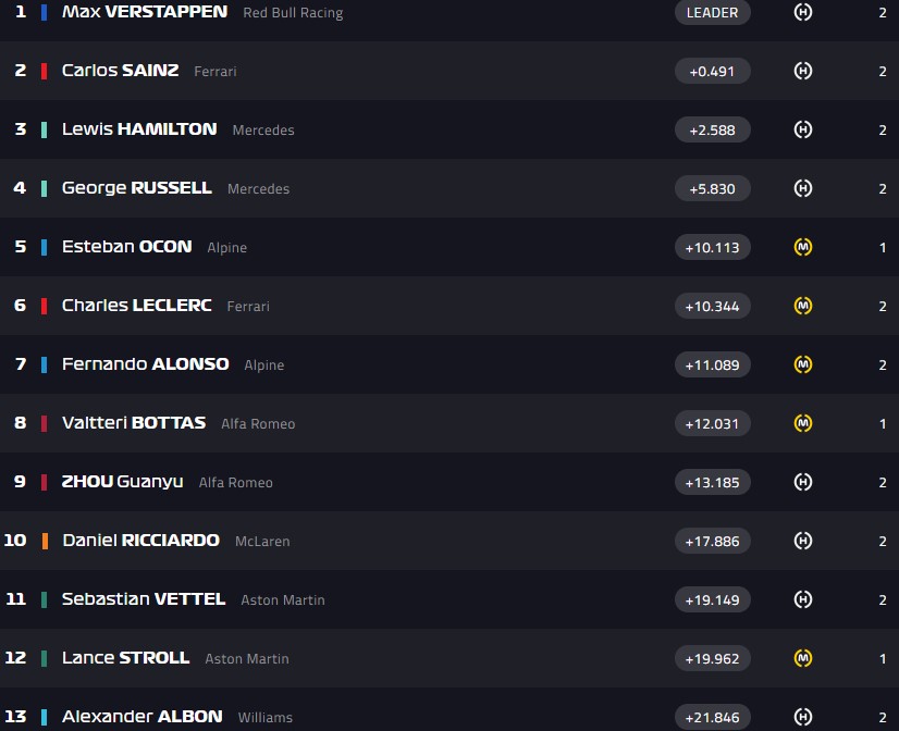 Ферстаппен сохранил первое место, как и Алонсо с Сайнсем и Хэмилтоном.