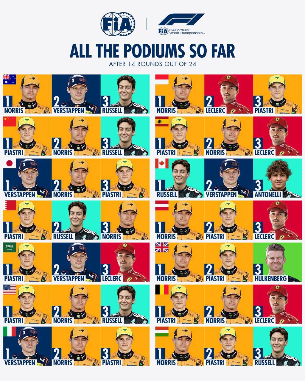 Пиастри сохранил первое место, а вот Ферстаппен прошёл Норриса, во втором повороте едва не вылетел, но сохранил своё место.