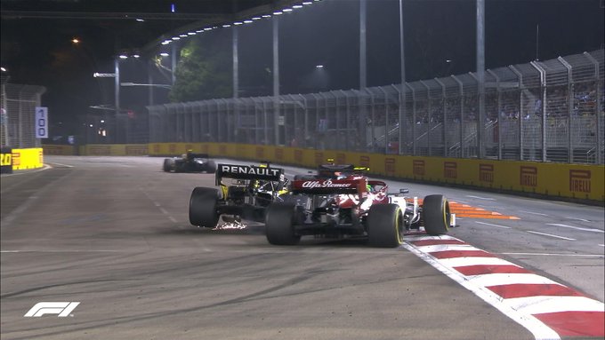 Даниэль Риккардо (Renault) пытался воспользоваться атакой Албона на Джовинацции и пройти итальянца, но атака завершилась контактом между Джовинацци и Риккардо.
