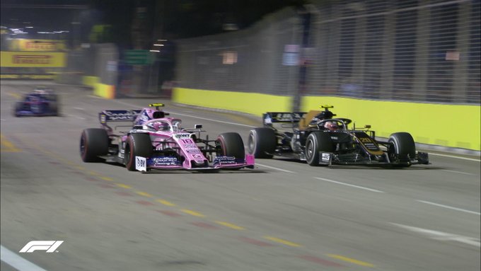 На повторе видно, что в пятом повороте был прокол у Сайнса из-за атаки Хюлькенберга. И оказывается Рикьярдо подцепил Джорджа Расселла(Willams).