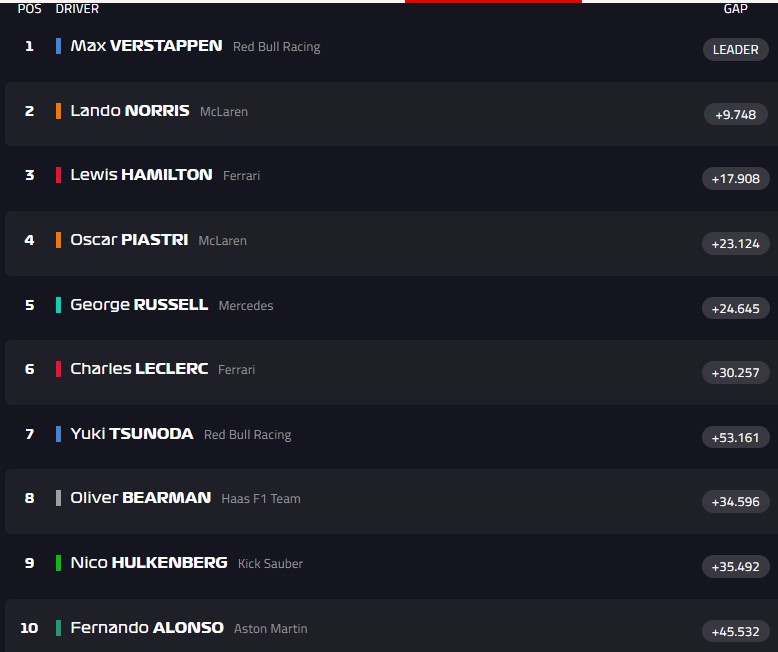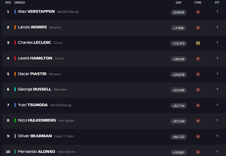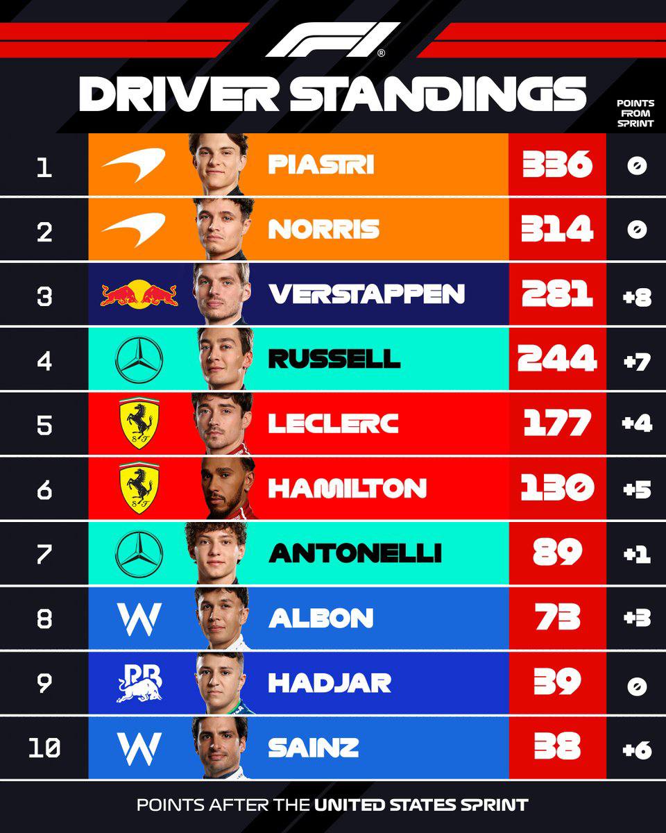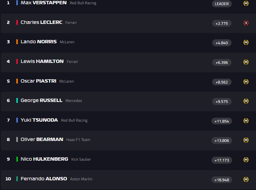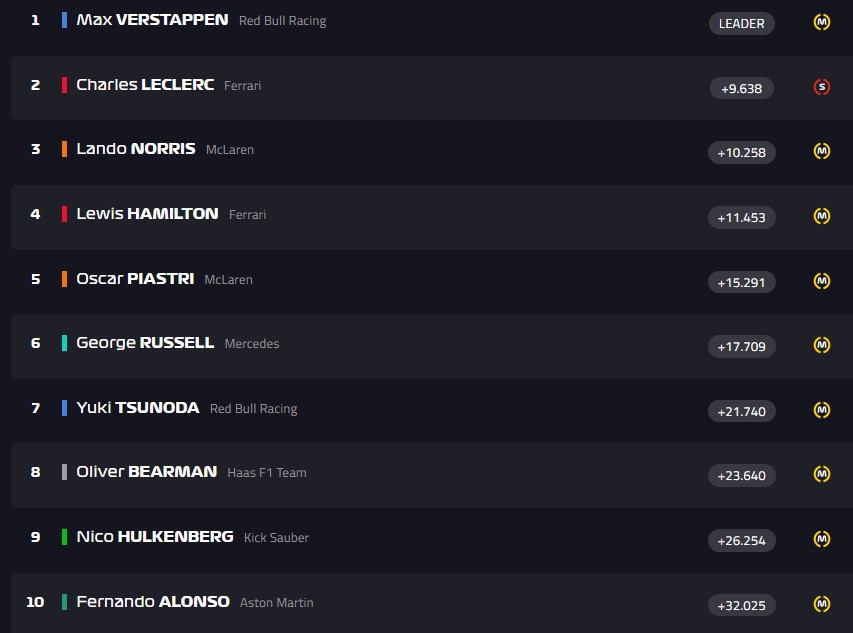 Ферстаппен сохраняет первое место, а вот Леклер проходит Норриса.