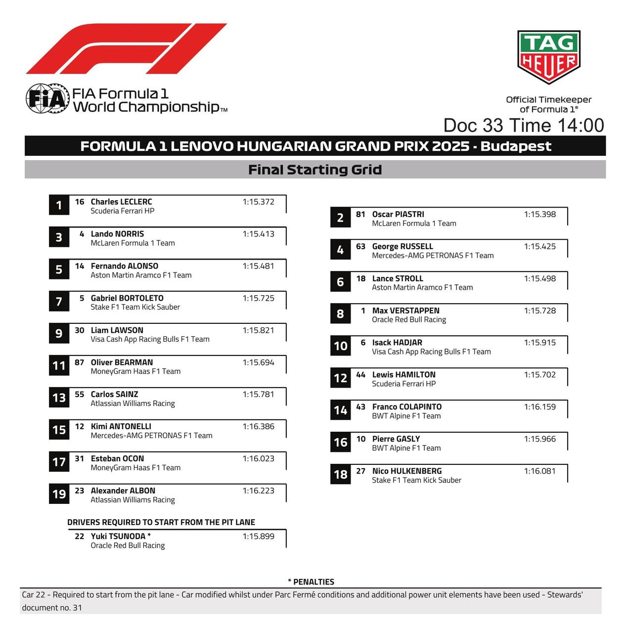 Раньше тронулся с места Хюлькенберг на старте и ему дали 5 секунд за это.