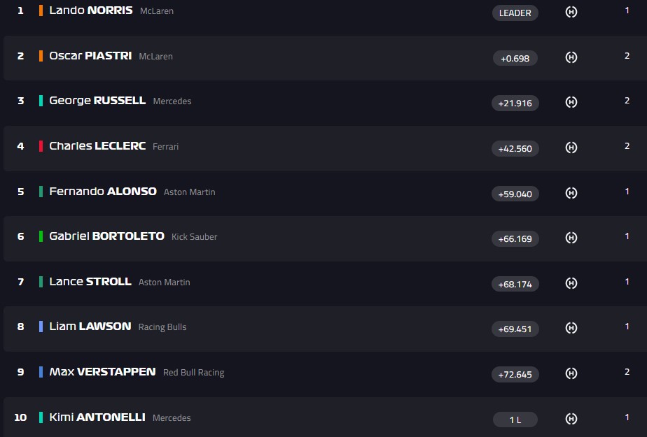 Норрис быстрее всех на трассе и он, вероятно, выиграет эту гонку за счёт тактики 1 пит-стопа.
