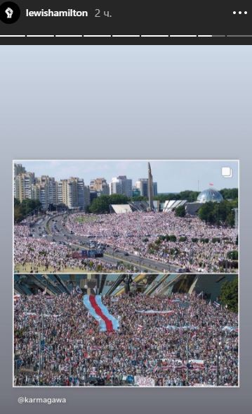 Шестикратный чемпион Формулы-1 сделал у себя в Instagram репост записи, посвящённой протестам в Белоруссии.
