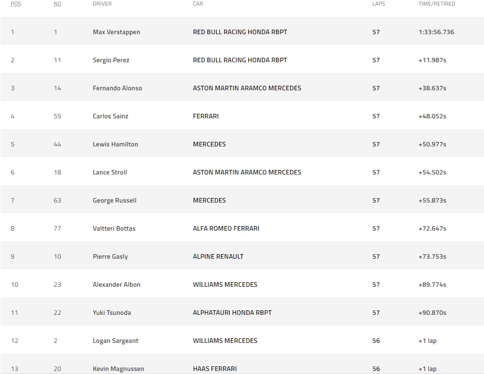Sport.ru/Формула-1. В Бахрейне завершился стартовый этап Формулы-1. "Ред Булл" в этой гоне сделал золотой дубль. Победителем стал действующий чемпион Макс Ферстаппен ("Ред Булл"). Второе место занял его партнёр по команде Серхио Перес. Тройку сильнейших замкнул пилот "Астон Мартин" Фернандо Алонсо.