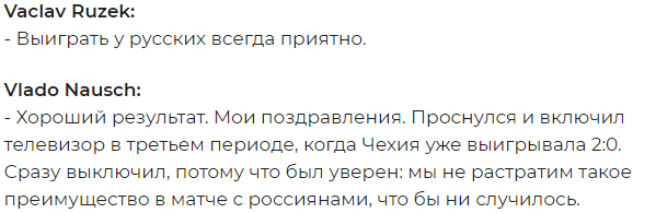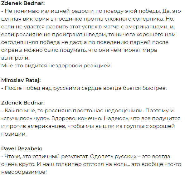 Сразу после матча на страницах популярного чешского сайта Idnes.cz болельщики команды Карела Млейнека поделились впечатлениями от первой победы своих любимцев в далёкой Канаде.