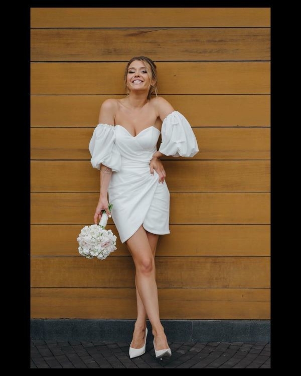 Девушка опубликовала фотографию, где она позирует в свадебном мини-платье белого цвета.