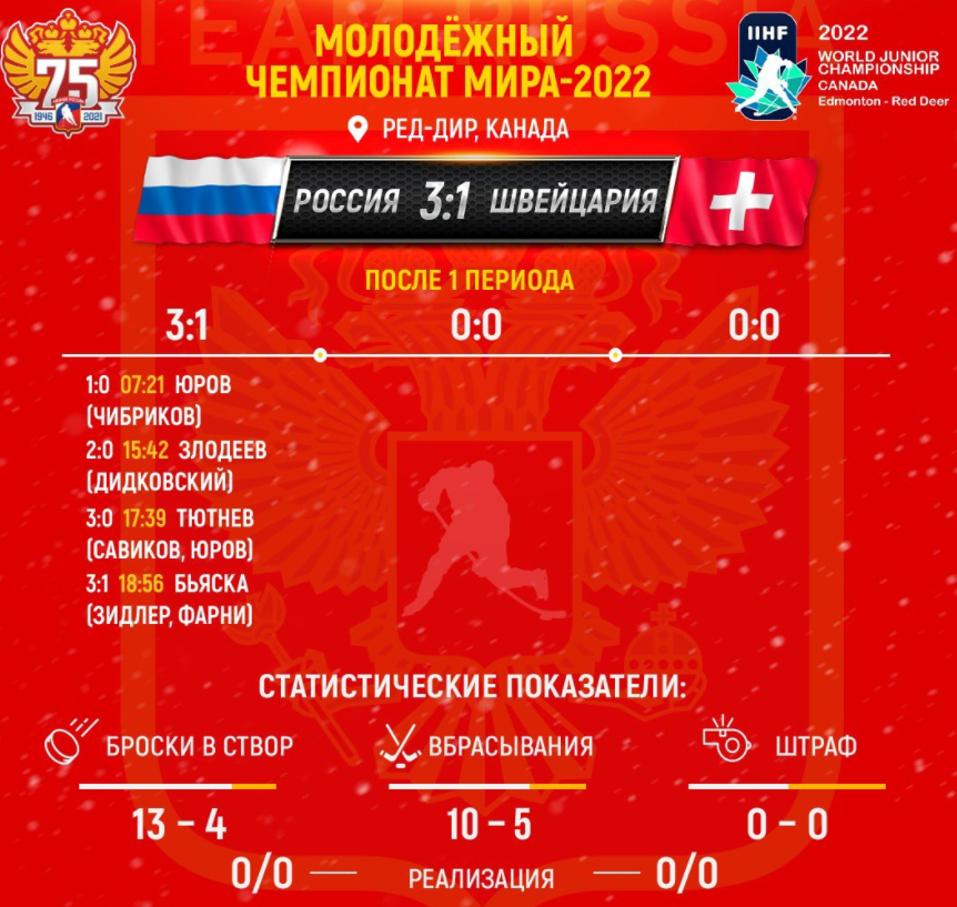 Россия добывает непростую победу над Швейцарией на Молодёжном чемпионате мира (Видео)