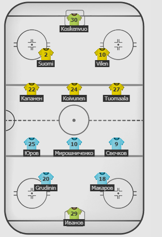 Второе большинство получают финны. Удалён у российской сборной Всеволод Гайдамак.