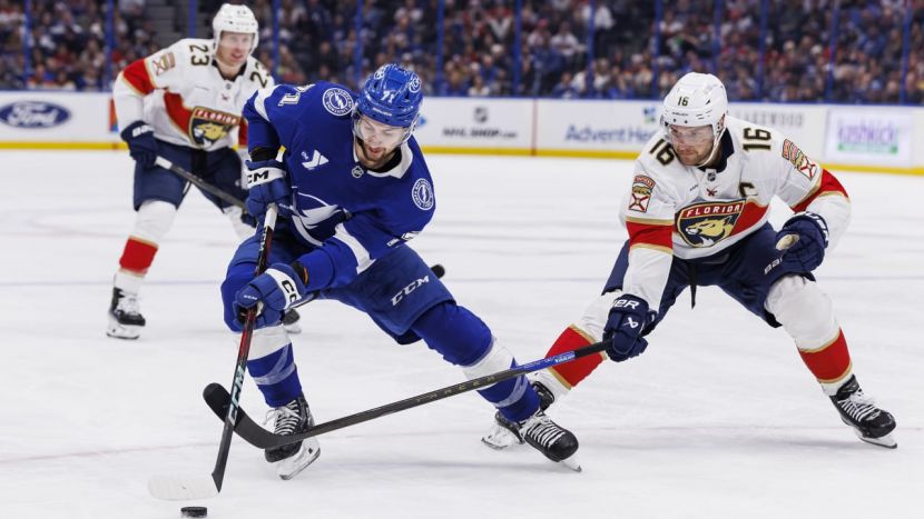 Sport.ru / Хоккей. В ночь на 23 апреля "Тампа-Бэй Лайтнинг" в стартовом матче серии первого раунда плей-офф НХЛ принимала "Флориду Пантерз". Со счётом 6:2 победу одержал действующий обладатель Кубка Стэнли.