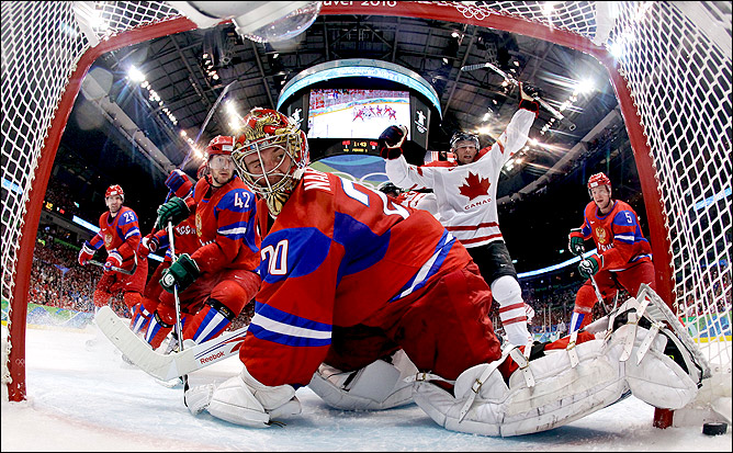 В 1/8 финала Канада уничтожила Германию (8:2) и вышла на Россию. Встреча двух главных хоккейных стран была намечена на 24 февраля и начиналась в 16:30 по ванкуверскому времени. В России же стартовое вбрасывание в матче Россия — Канада состоялось поздней ночью — в 3:30 мск. Однако это не помешало Первому каналу собрать многомиллионную аудиторию у экранов телевизора.