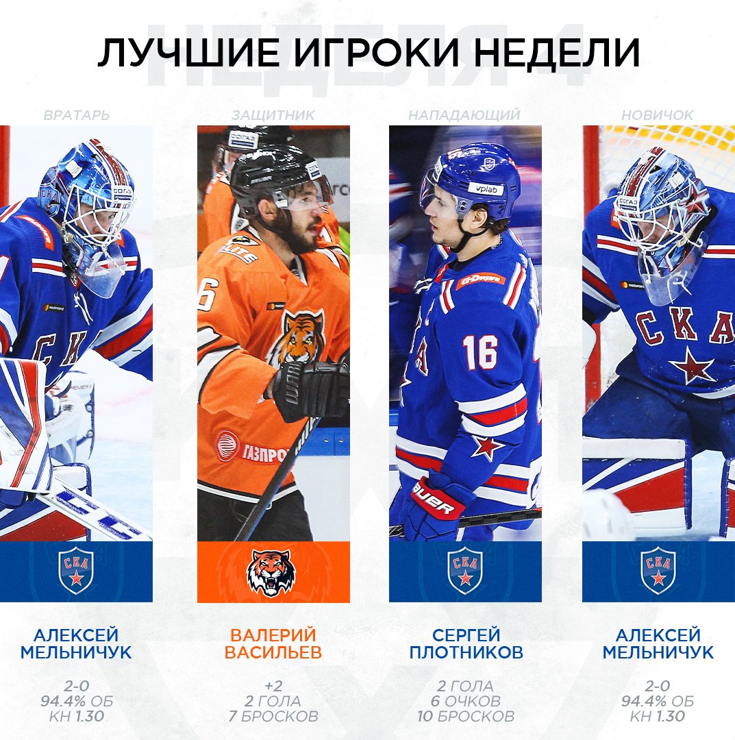 Лучшим вратарём признан 21-летний игрок "СКА" Алексей Мельничук, который помог своей команде одержать две победы в трёх матчах (лучший результат недели), в матче против "ЦСКА" его клуб уступил в серии буллитов (2:3 Б). 21-летнему голкиперу удалось отразить 94,37% бросков по своим воротам и показать на неделе коэффициент надёжности 1,30.