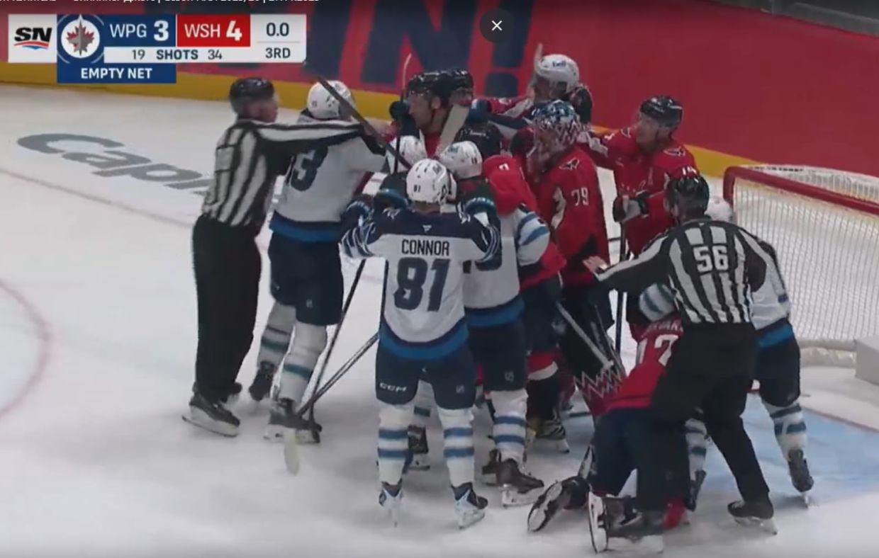 Sport.ru / Хоккей. Матч очередного игрового дня регулярного чемпионата НХЛ между "Вашингтон Кэпиталз" и "Виннипег Джетс" завершился массовой потасовкой. Она произошла после завершения поединка, закончившегося победой "Вашингтона" со счётом 4:3.
