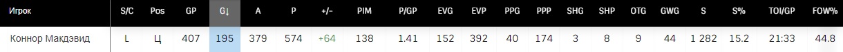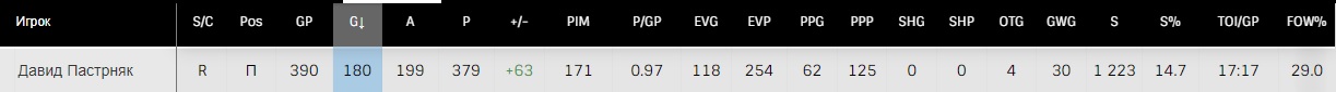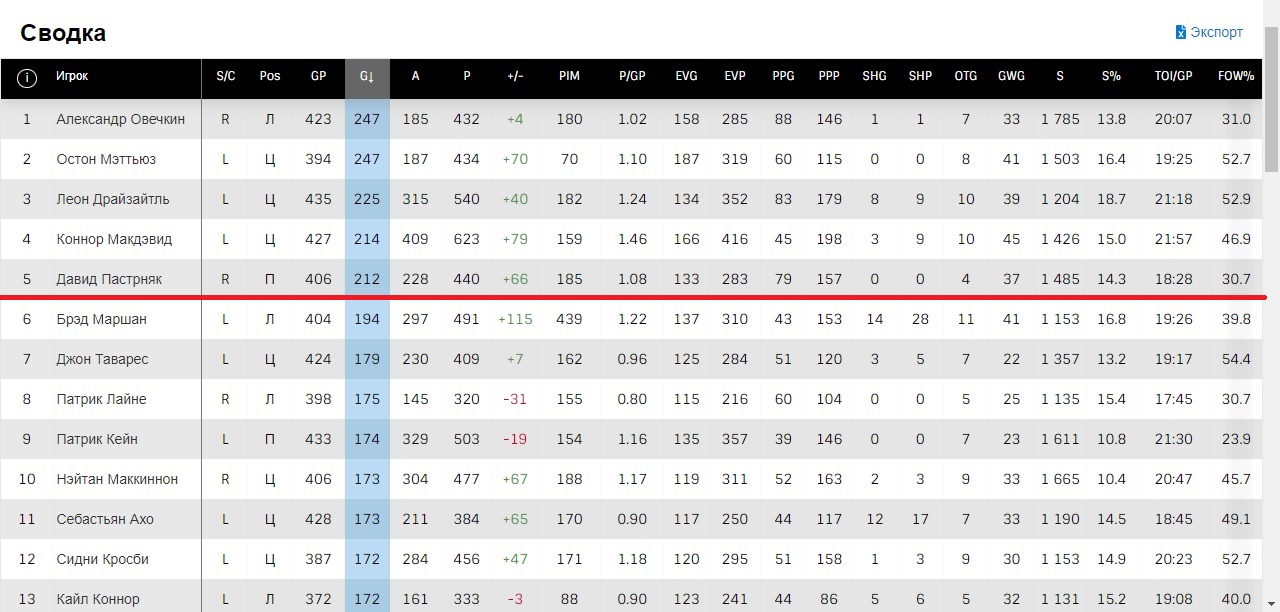 Мы остановимся на пяти первых снайперах. Причины две: во-первых, между Пастрняком и идущим на шестом месте его одноклубником Маршаном довольно существенная разница по голам - 18; во-вторых, за исключением Овечкина, все остальные представители Топ-5, что очень важно, одного возраста. Мэтьюз - 24 года, Драйзайтль - 26 лет, Макдэвид - 25 лет, Пастрняк - 25 лет. В то время как следующие за ними Маршан и Таварез существенно превосходят вышеназванных по возрасту, и рассматривать их смысла уже не имеет.