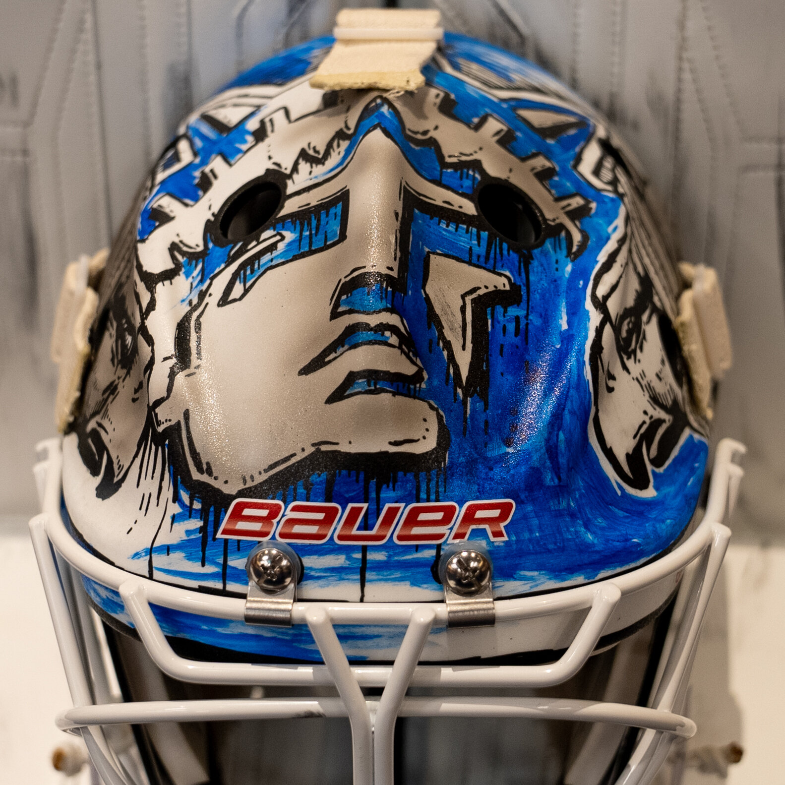 Главный монумент США размещён в верхней части шлема. На нижнюю часть нанесён игровой номер 31, раскрашенный в красно-синие цвета "копов".