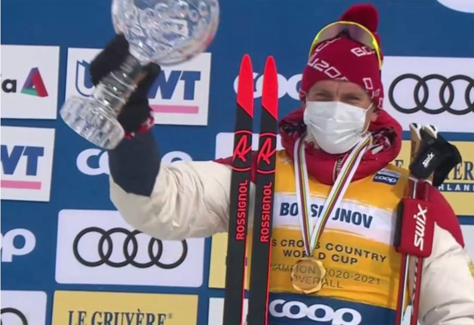Российский лыжник Александр Большунов по итогам Кубка мира 2020/2021 завоевал Большой хрустальный глобус.