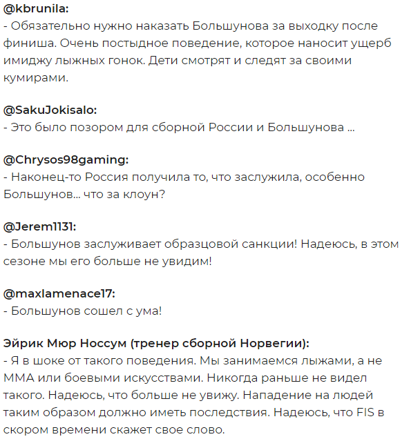 Инцидент в Лахти не остался без внимания европейских поклонников лыжных видов спорта, которые в западном сегменте Twitter устроили настоящую дискуссию о случившимся.
