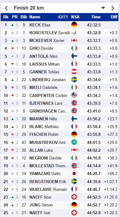 Российский лыжник Савелий Коростелёв не сумел завоевать золотую медаль и остался с серебром. Коростелёв проиграл немцу Элиасу Кеку 0.3 секунды. Третье место завоевал канадец Хавьер Маккивер.