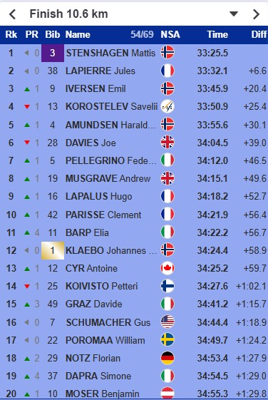 Победу в гонке одержал норвежец Маттис Стенсхаген, второй - Жюль Лапьерр, третий - Эмиль Иверсен.