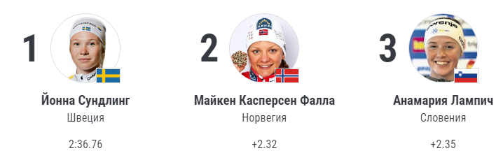 У девушек лучший результат в квалификации, что было неожиданно, показала 22-летняя Христина Мацокина, финишировав на девятой позиции. Она уступила 5.99 секунд победительнице первого этапа – шведке Йохане Хагстрём. Чуть хуже выступила Татьяна Сорина – у неё десятый результат. Юлия Ступак была 15-й, а Наталья Непряева – 17-й.