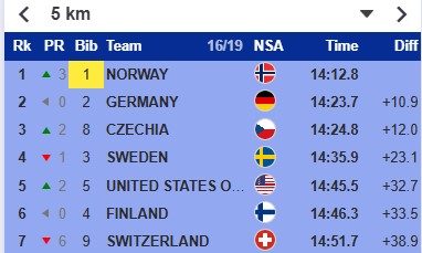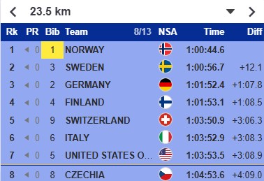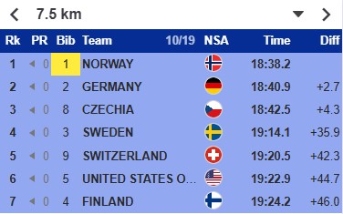 Передача эстафеты: Норвегия первая, Германия вторая, Чехия третья.
