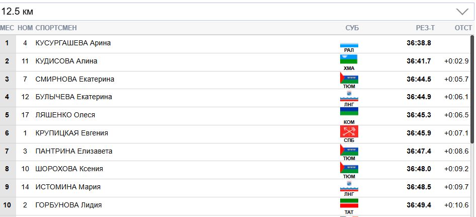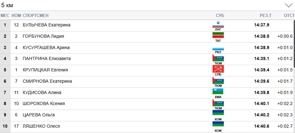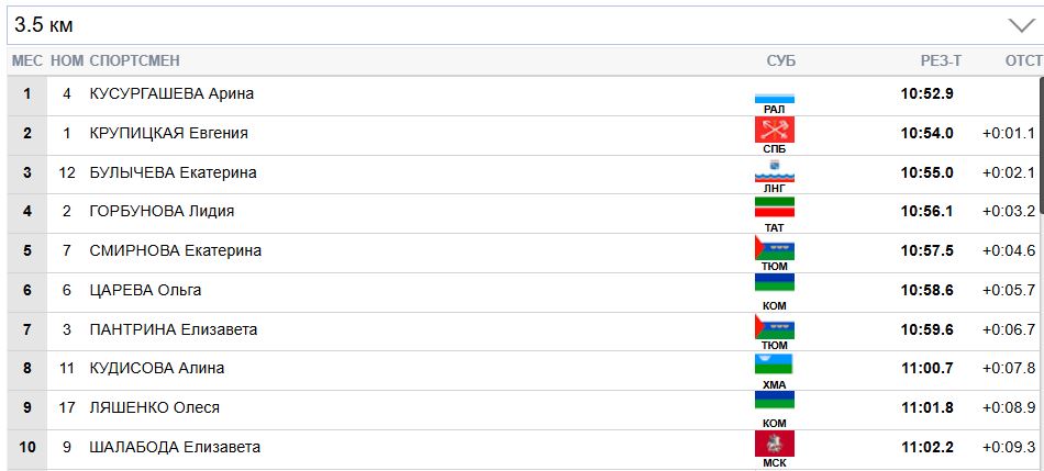 Кусургашева уже отстаёт от Пантриной и Булычевой на 9 секунд.