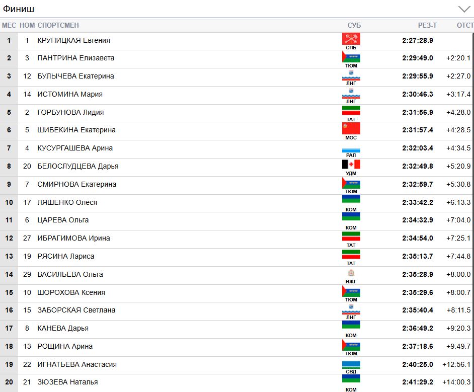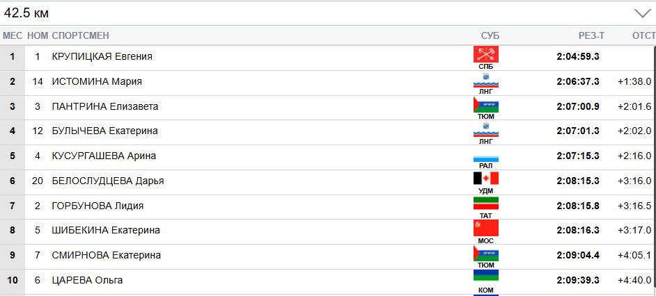 У Истоминой же преимущество над Пантриной и Булычевой в 24 секунды.