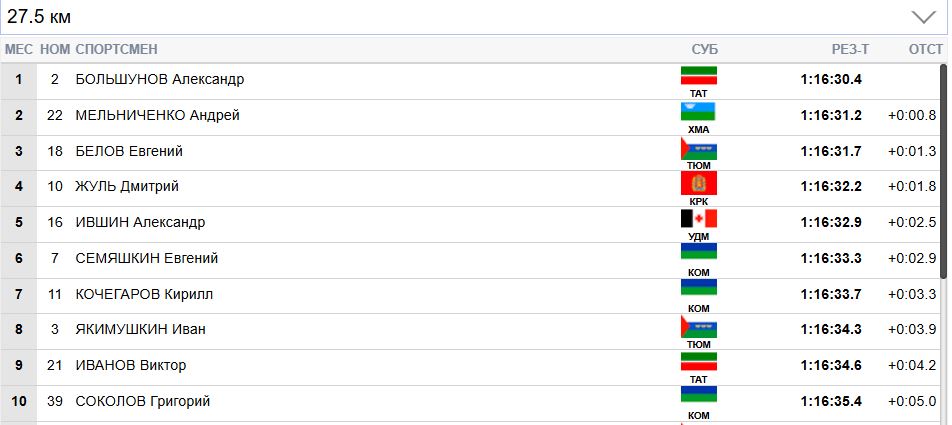 И в финишном створе далее побеждает Мельниченко и забирает серебро. Бронза у Семяшкина. Гонка завершена.