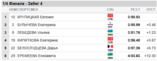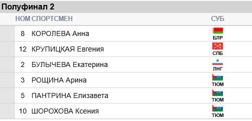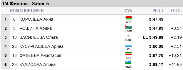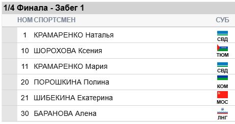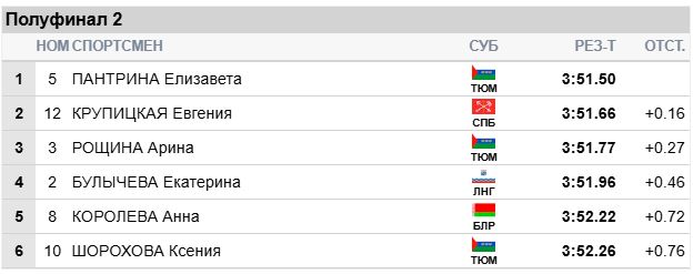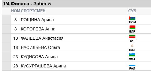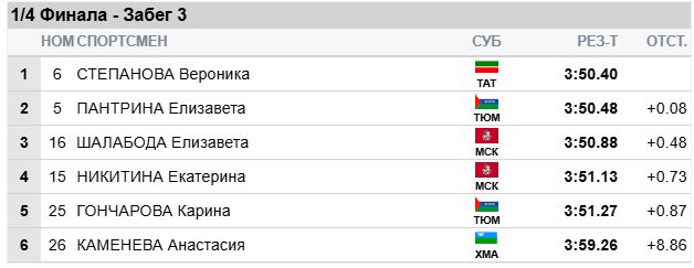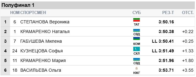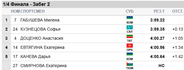 Выигрывает этот забег Габушева и вместе с Кузнецовой выходит в полуфинал.